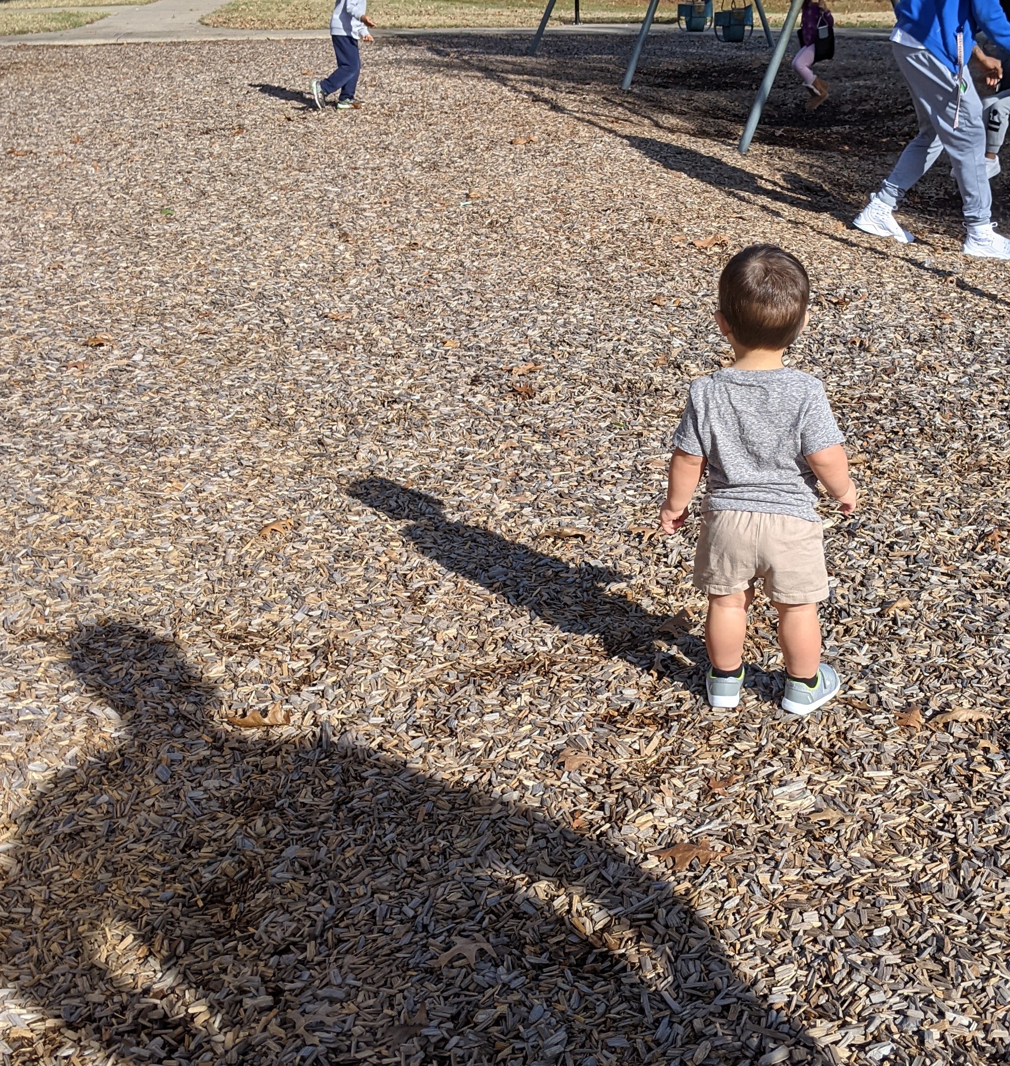 Now that Kyle and I are physically back on campus, Elías attends a home daycare with 3-4 other kids. Unfortunately, he’s still trapped inside quite a bit, but the Houston “cold” is simply becoming an opportunity to truly enjoy the outdoors. Elías is unamused with our neighborhood park, so when we drove a different path home one day, Kyle and I spotted a beautiful park about a mile from our house. We finally went yesterday, and the three of us loved it so much, we returned today!