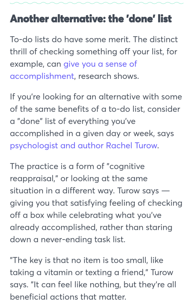 AND he provides a solution for those of us who like to cross things off… A “done” list. HAHA don’t judge me; I’m going to try it.