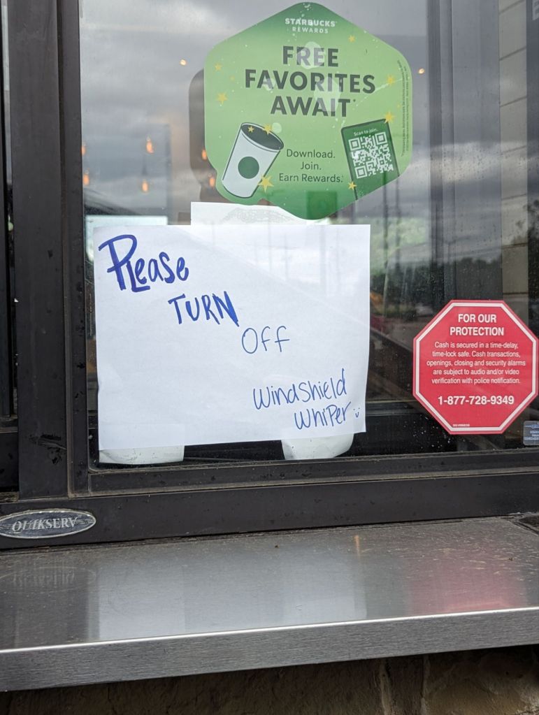 When I worked in the Starbucks drive thru myself, it was the worst haha! I’d stare at the customer and try to mime for them to turn off their wipers!